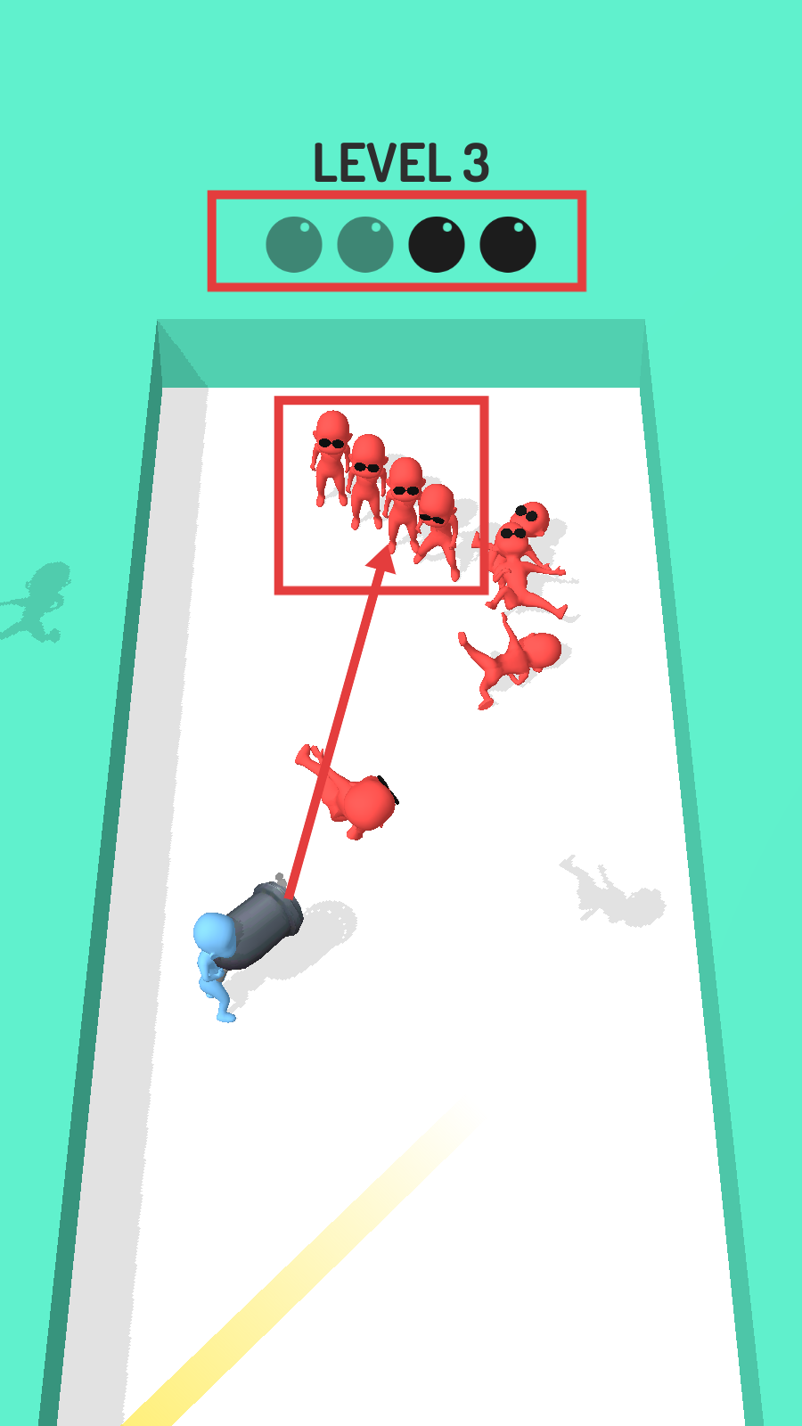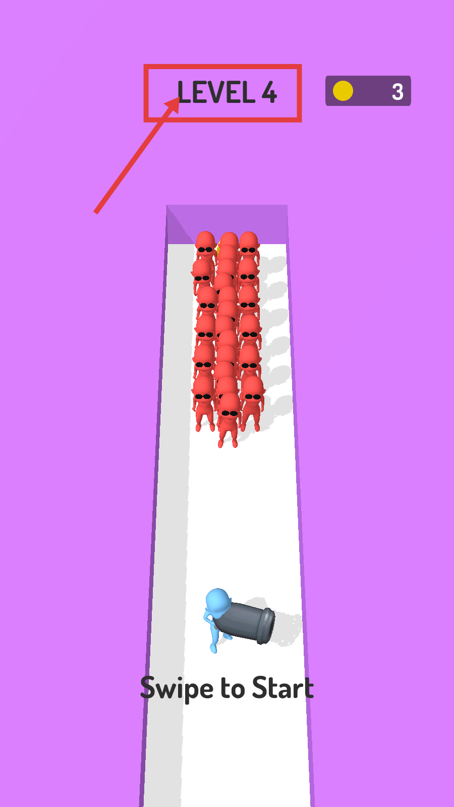 4、完成【LEVEL-3】后进入【LEVEL-4】,滑动屏幕开始,面对更密集的红色小人队列,做好攻击准备。