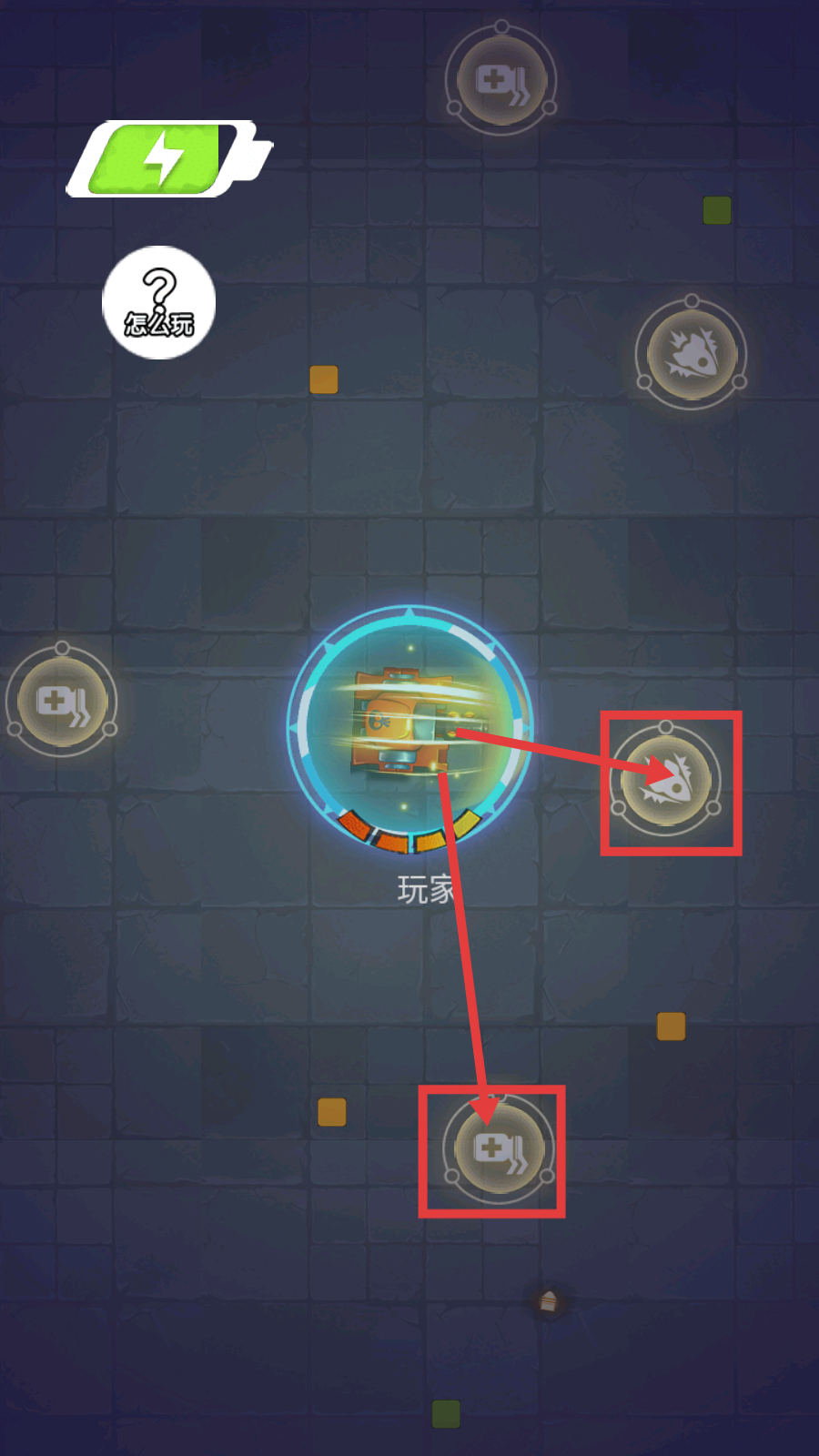 2、在游戏中操控坦克,收集【导弹】【加血】等道具,提升坦克战力,为对战做准备。