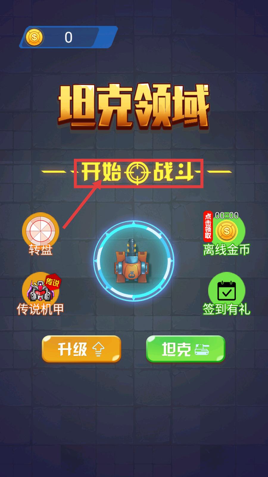 1、进入【坦克领域】游戏界面后,点击【开始战斗】按钮,开启坦克对战任务,可先熟悉界面功能。
