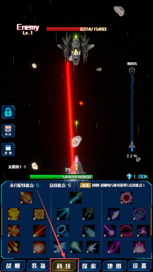 3、如何分配技能点:在战斗中,你可以通过点击“科技”按钮来分配技能点,提升战舰的能力。