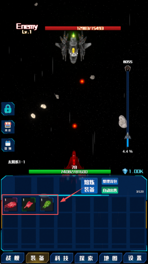 4、如何管理装备:在游戏界面下方,点击“装备”按钮,你可以查看和管理你的战舰装备,通过熔炼和整理背包来优化你的装备配置。