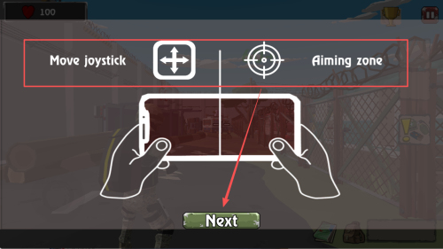 2、如何操作角色:根据提示,移动虚拟摇杆来控制角色移动,点击瞄准区域进行射击。