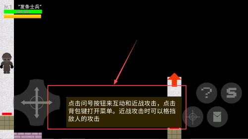 3、如何进行攻击:在游戏中,点击问号按钮进行互动和近战攻击,点击背包键打开菜单。