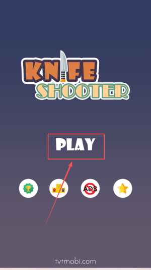 1、见到“KNIFE SHOOTER PLAY tvtmobi.com”时,点击“PLAY”即可进入游戏。