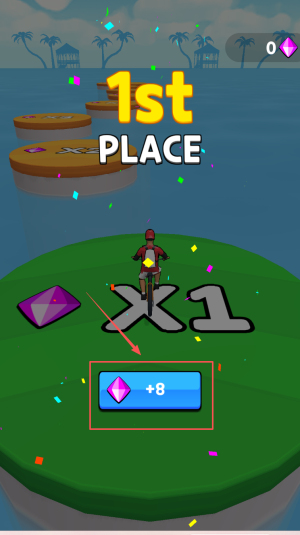 4、若结果页出现“1st PLACE 灭1 +8”,说明夺得冠军并获得8分奖励,点击可继续下一局。