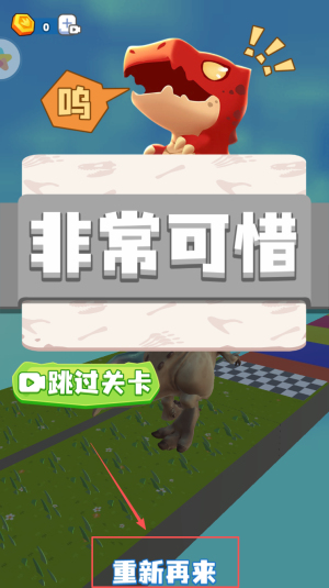 4、若提示“非常可惜 跳过关卡 重新再来”,想重开本关就点“重新再来”,想继续往后则点“跳过关卡”。