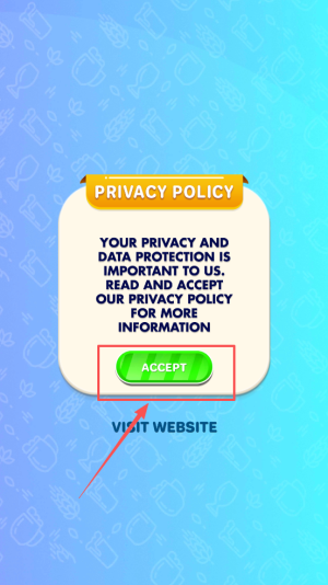 1、首先,阅读并同意“隐私政策”中的“ACCEPT”选项,以继续游戏。