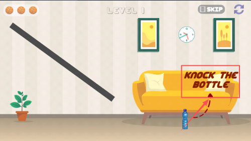 2、接着,根据提示“KNOCK THE BOTTLE”用木棍击倒水瓶。