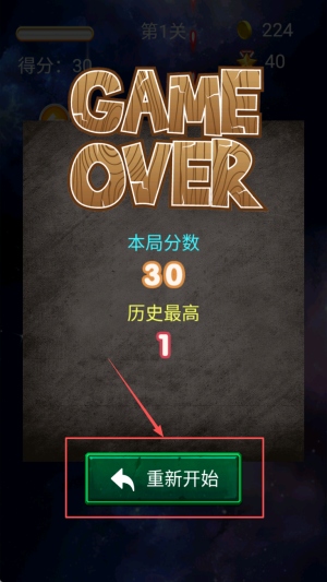 4、如何重新开始:游戏结束后,点击“重新开始”按钮,再次挑战当前关卡。