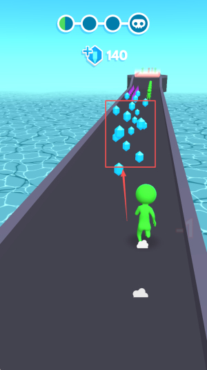 3、用道具助通关:跑酷中拾取道具,根据局势使用,比如用范围收集道具一次性抓取多个小人,助力更快达成巨人化条件。