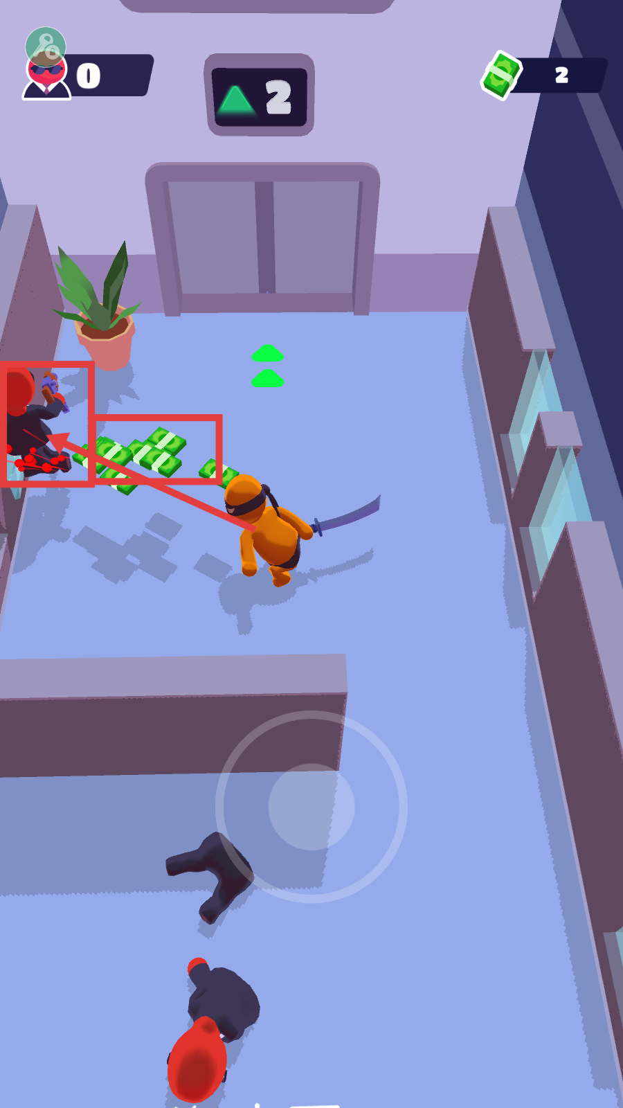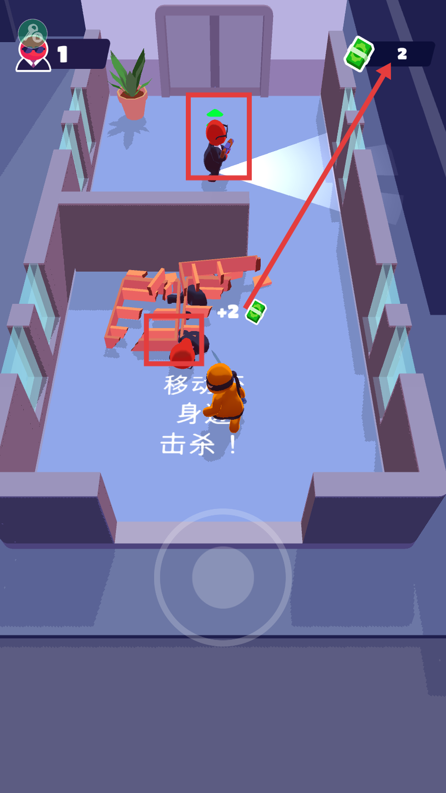 3、遭遇敌人时,观察其位置与周围金钱,优先击杀敌人并收集金钱,稳步推进关卡进程。