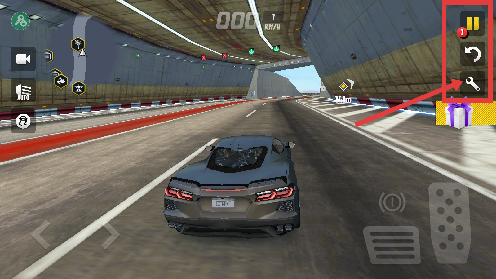 4、留意右侧【扳手】按钮,及时进行车辆维护,保障赛车性能,为持续驾驶和挑战做好准备。
