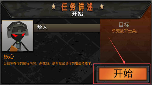 2、如何接受任务:在任务详述界面,阅读任务目标后,点击“开始”按钮接受任务。