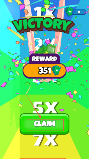 4、最后,胜利界面弹出“VICTORY REWARD”,点击“CLAIM”领取351积分与5倍、7倍翻倍奖励。