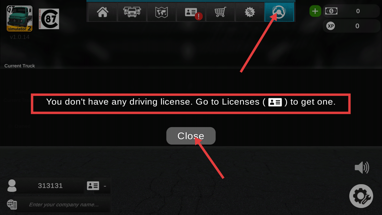 1、点击【Close】,处理“无驾驶执照”的提示,为后续操作扫清界面障碍。