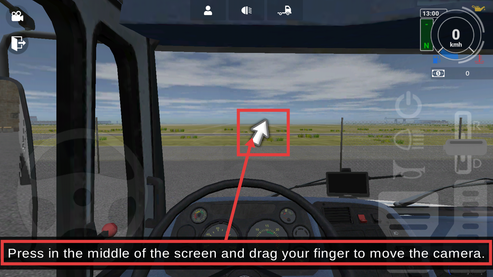 3、在驾驶界面,按压屏幕中间并拖动手指,移动相机视角,便于观察周围环境,提升驾驶体验与操作便利性。