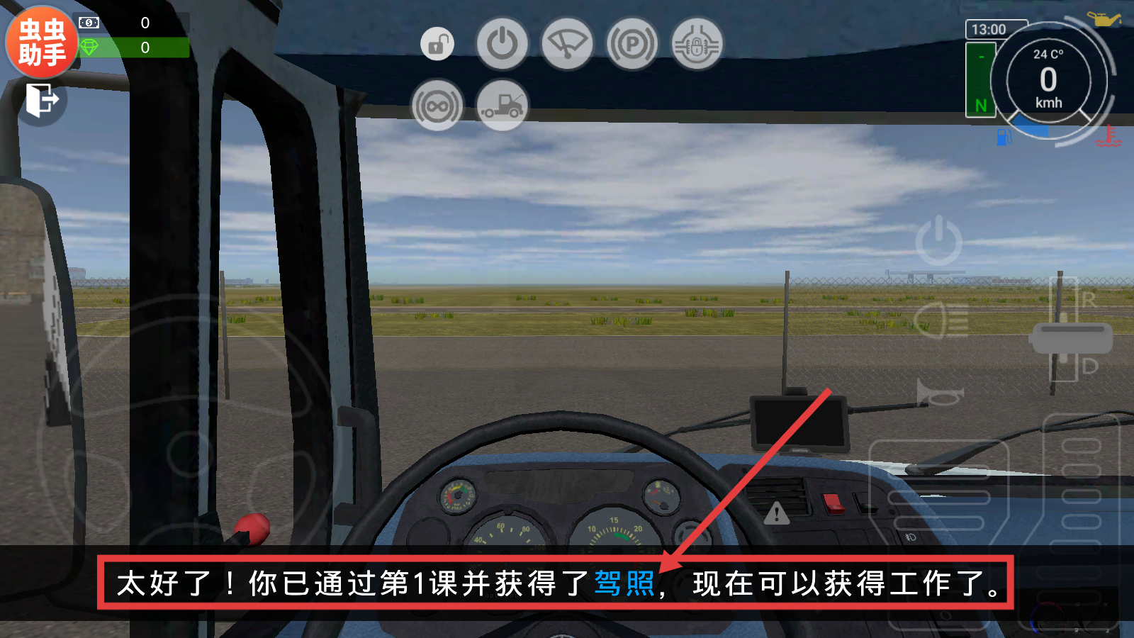 4、完成第1课后获得驾照,可进入工作系统承接运输任务,正式开启卡车运输生涯。