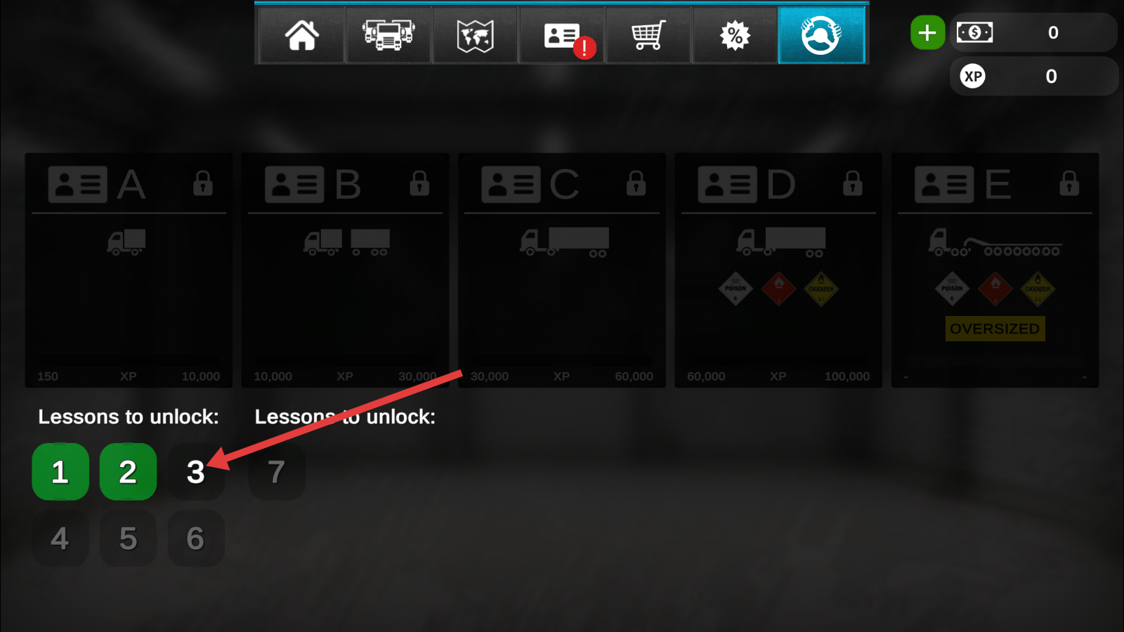 1、选择【课程3】,开启驾照进阶学习,提升驾驶技能等级,为承接更多运输任务奠定基础。