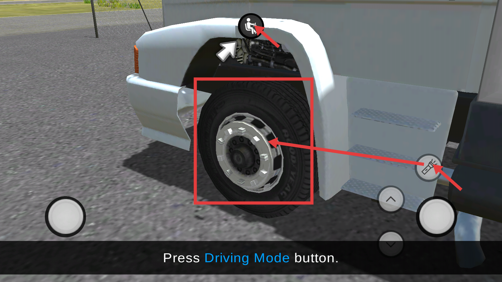 3、利用手电筒检查后轮胎后,点击【驾驶模式】按钮,完成模式切换,熟悉车辆操作模式,保障驾驶操作的规范性。