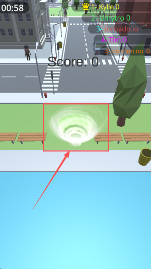 2、接着,通过点击屏幕控制龙卷风移动,吞噬物体以增加分数。