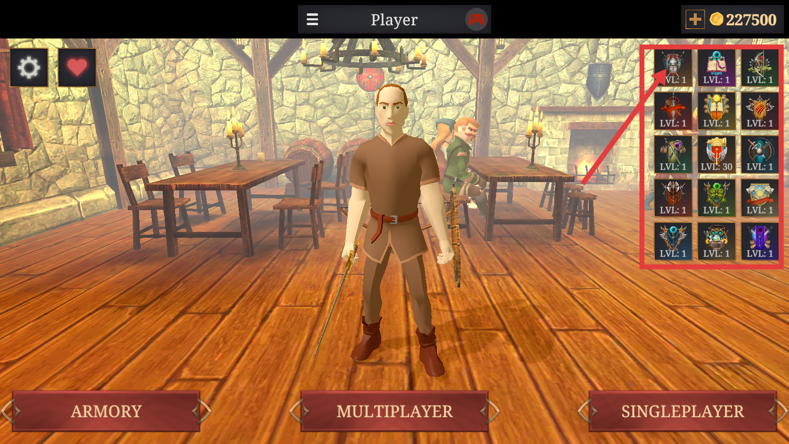 1、在角色选择界面,可挑选右侧多种【LVL:1】角色,根据需求选择升级装备、多人对战或单人模式,开启游戏征程。