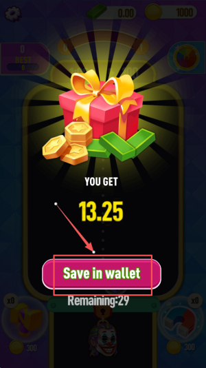 4、最后,点击“Save in wallet”按钮以保存你获得的奖励。