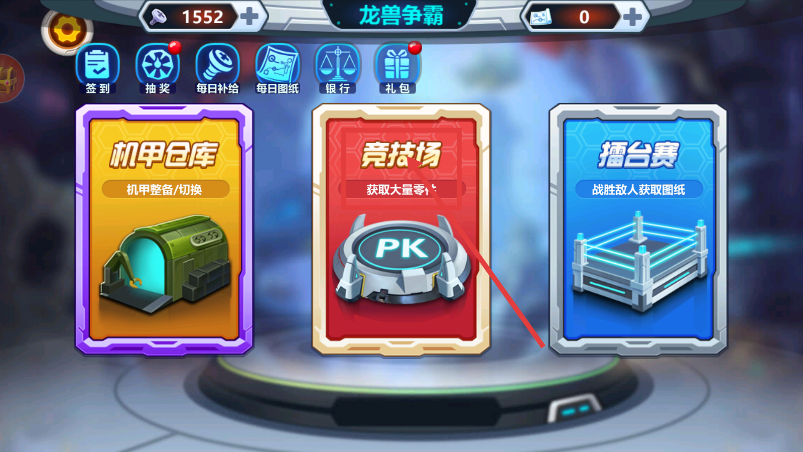 1、进入【竞技场】可获取大量零件,参与前可在【机甲仓库】整备机甲,提升战力后再挑战。