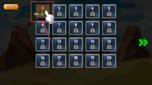 1、如何选择关卡:在关卡选择界面,点击数字1选择第一关。