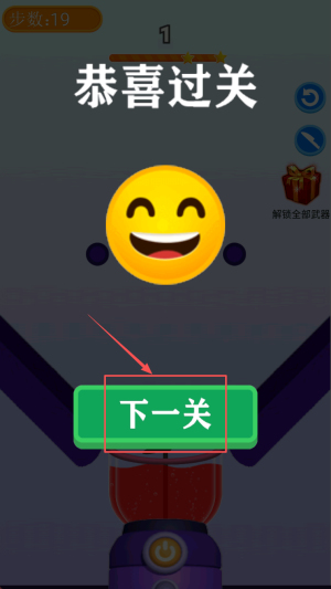 4、最后,步数剩19时通关,点击“下一关”继续挑战。