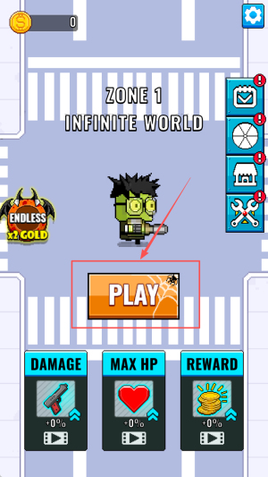 1、如何开始游戏:在游戏主界面,点击“PLAY”按钮进入游戏。