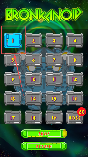 3、然后,在关卡选择界面,点击你想要挑战的关卡编号,然后点击“SHOP”或“RETURN”按钮进行下一步操作。
