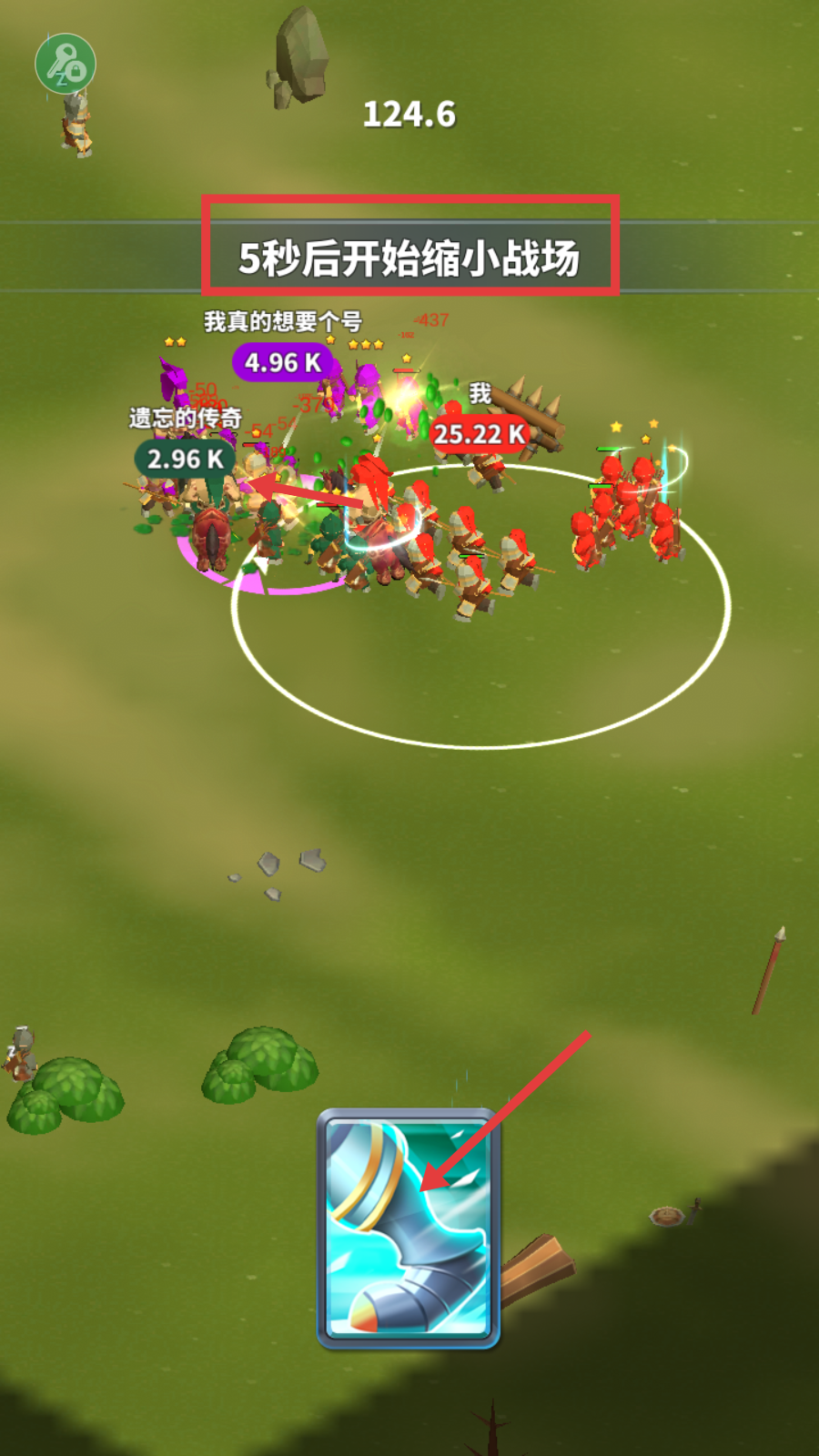 3、战斗时留意【5秒后开始缩小战场】提示,合理指挥队伍,利用技能卡提升战力,击败对手。