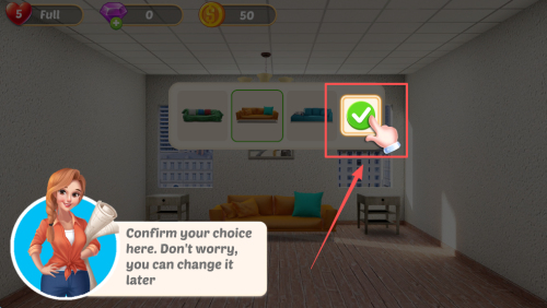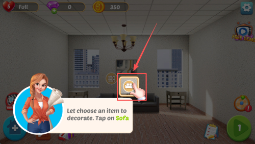 3、然后,根据游戏提示选择装饰物品,并点击“Tap on Sofa”进行装饰。
