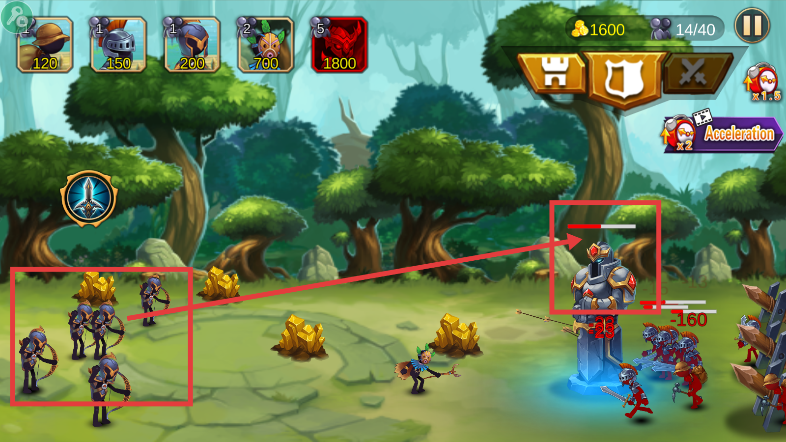 4、战斗中利用弓兵攻击敌方雕像,消耗其血量,争取胜利,积累更多资源。