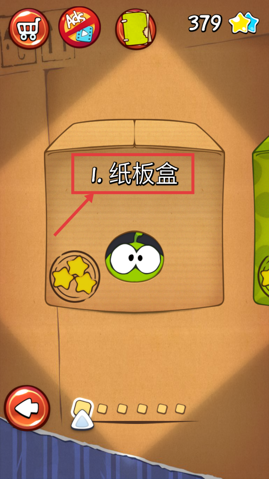1、点击【1.纸板盒】关卡进入,熟悉该关卡的纸板场景布局,为后续绳索剪断操作做好准备。