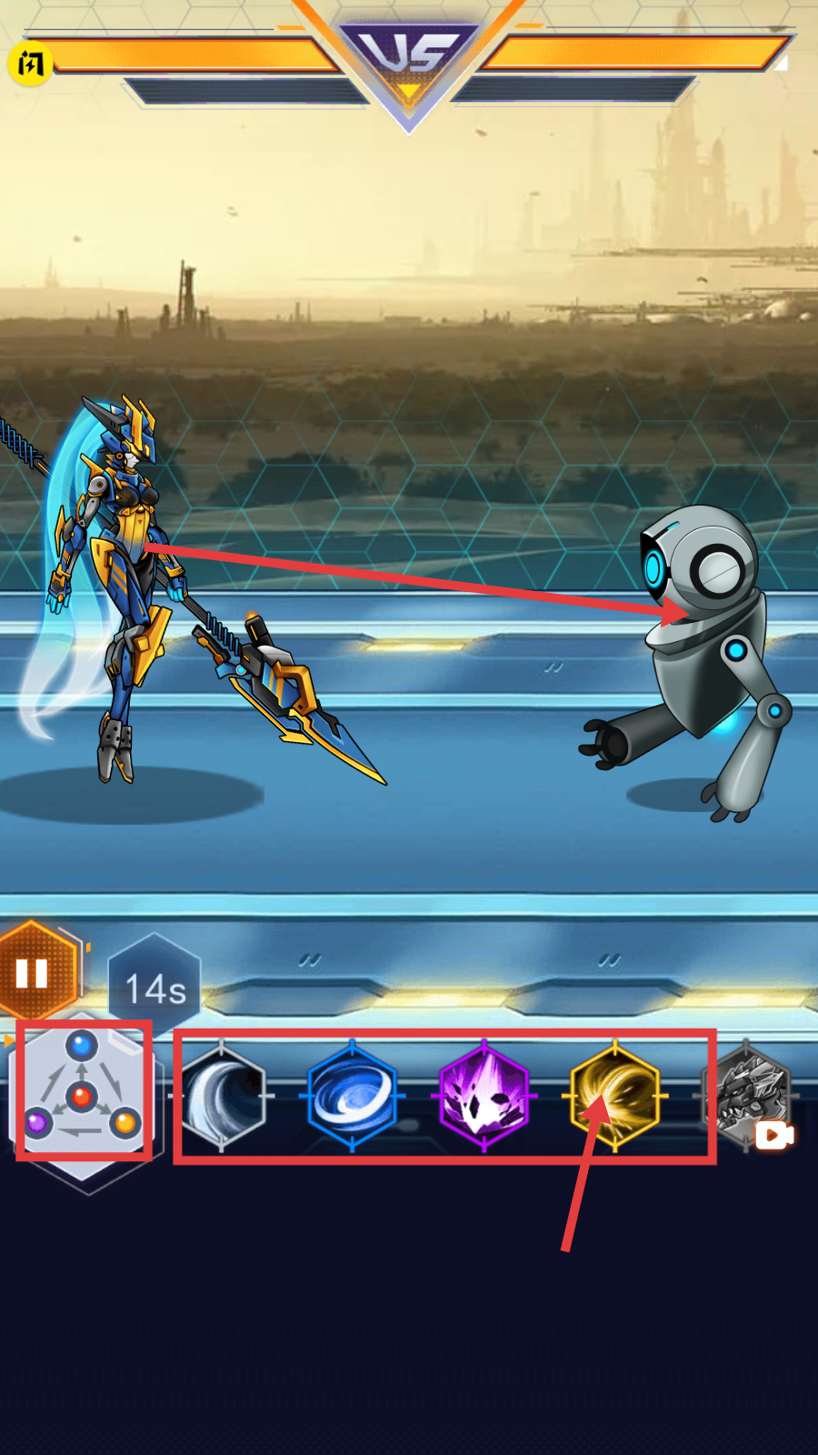 2、对战【机器人】时,利用下方技能,把握释放时机,针对敌方释放技能,提升对战胜率。