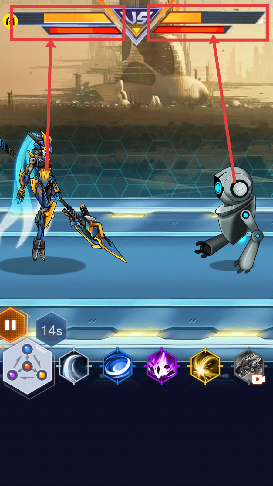 3、对战中关注上方血条,根据血量变化调整技能释放策略,争取击败敌方机甲。