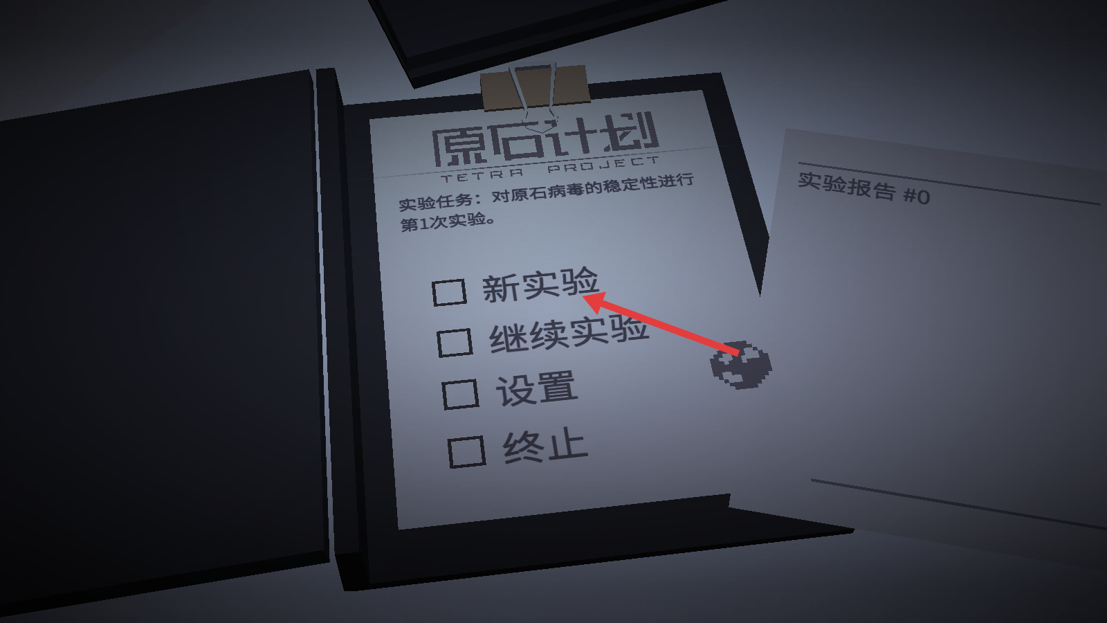 1、点击【新实验】开始《原石计划》实验,目标对原石病毒稳定性进行第1次实验,开启实验挑战。