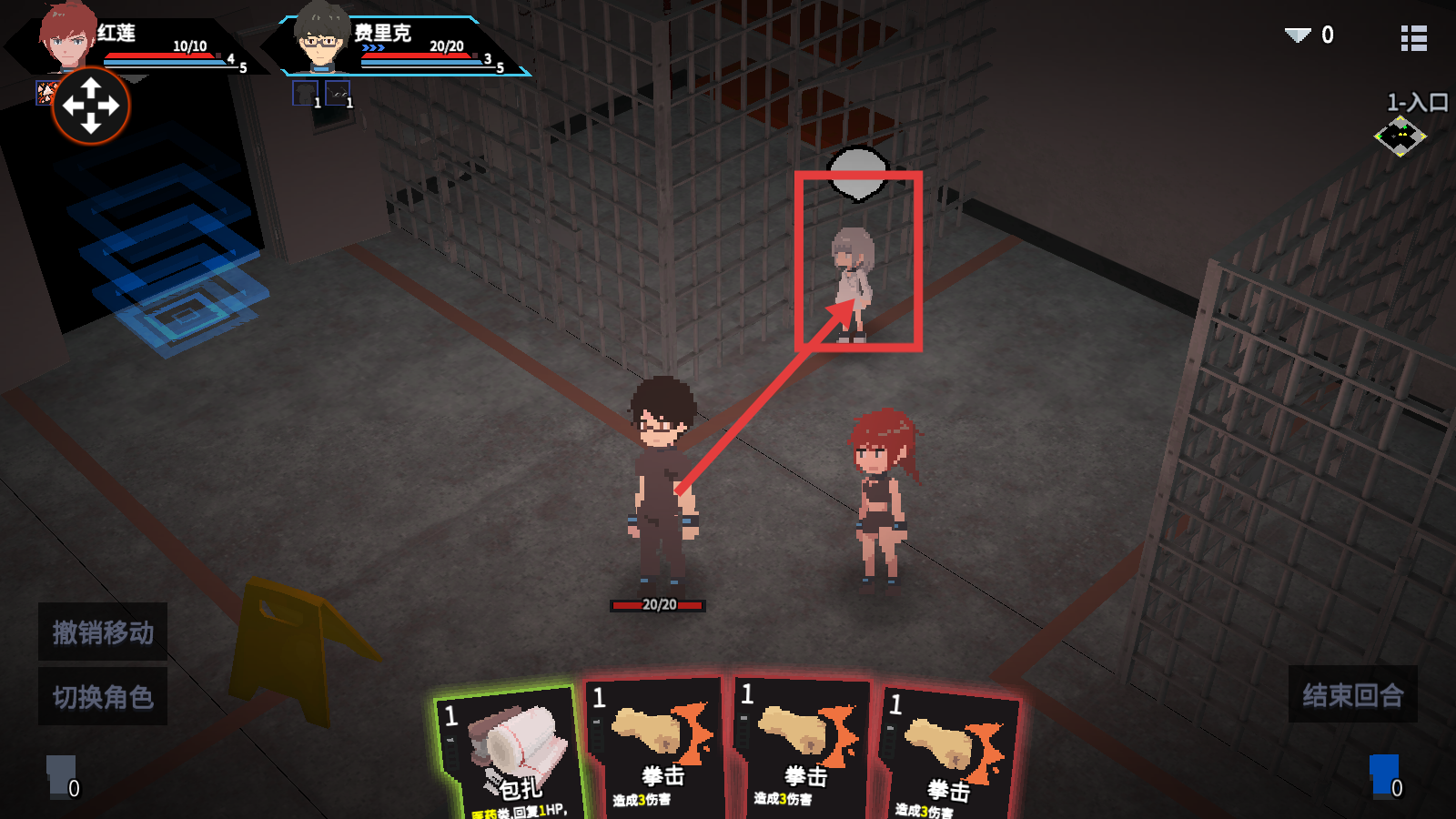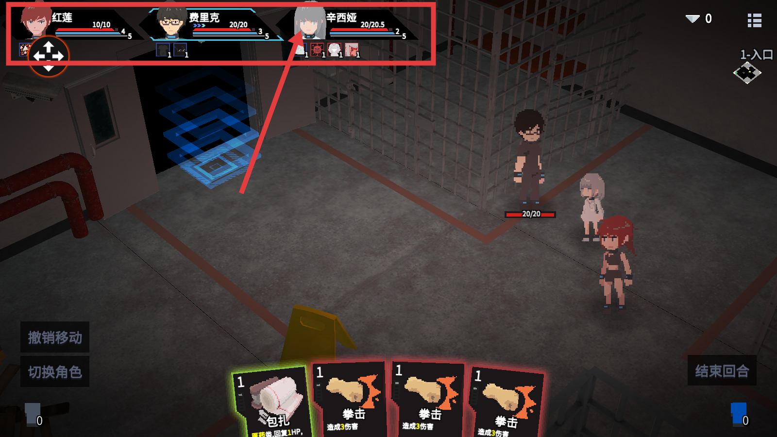 2、移动角色接近红色框选的少女,为后续剧情选择做准备,利用卡牌应对可能的战斗。
