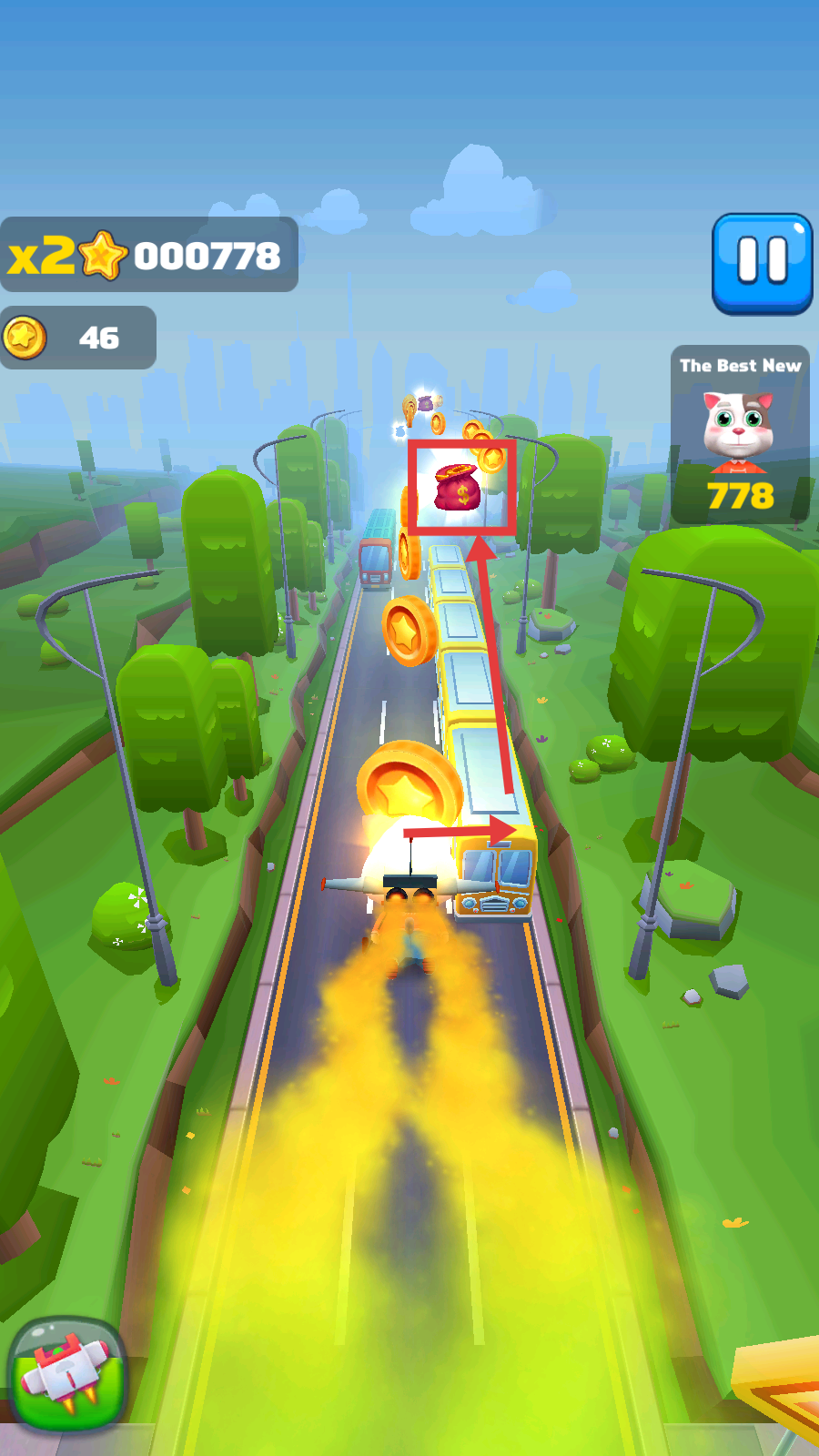3、遇到红色钱袋时务必收集,获取大量奖励,助力分数突破。