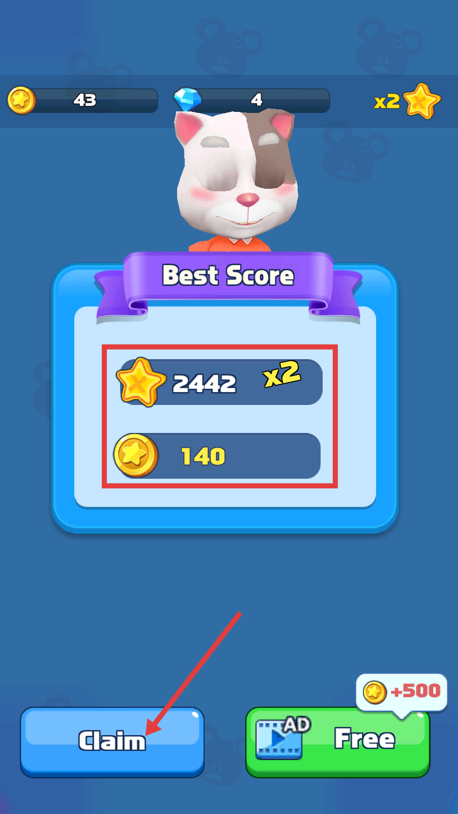 4、游戏结束后查看【Best-Score】,点击【Claim】领取奖励,继续挑战新纪录。