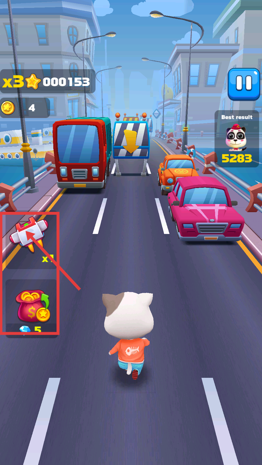 2、跑酷时优先收集红色框选的火箭和金币袋道具,助力跑酷进程与资源积累。