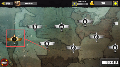 2、如何选择关卡:在关卡选择界面,点击数字1选择第一关,开始你的战斗。