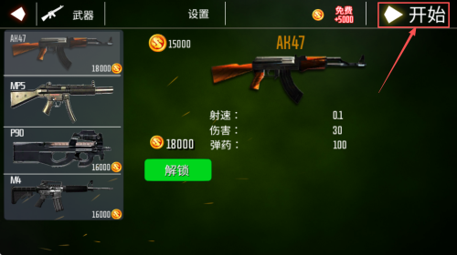 2、如何解锁武器:在武器选择界面,点击“解锁”按钮,使用金币购买并解锁新武器。