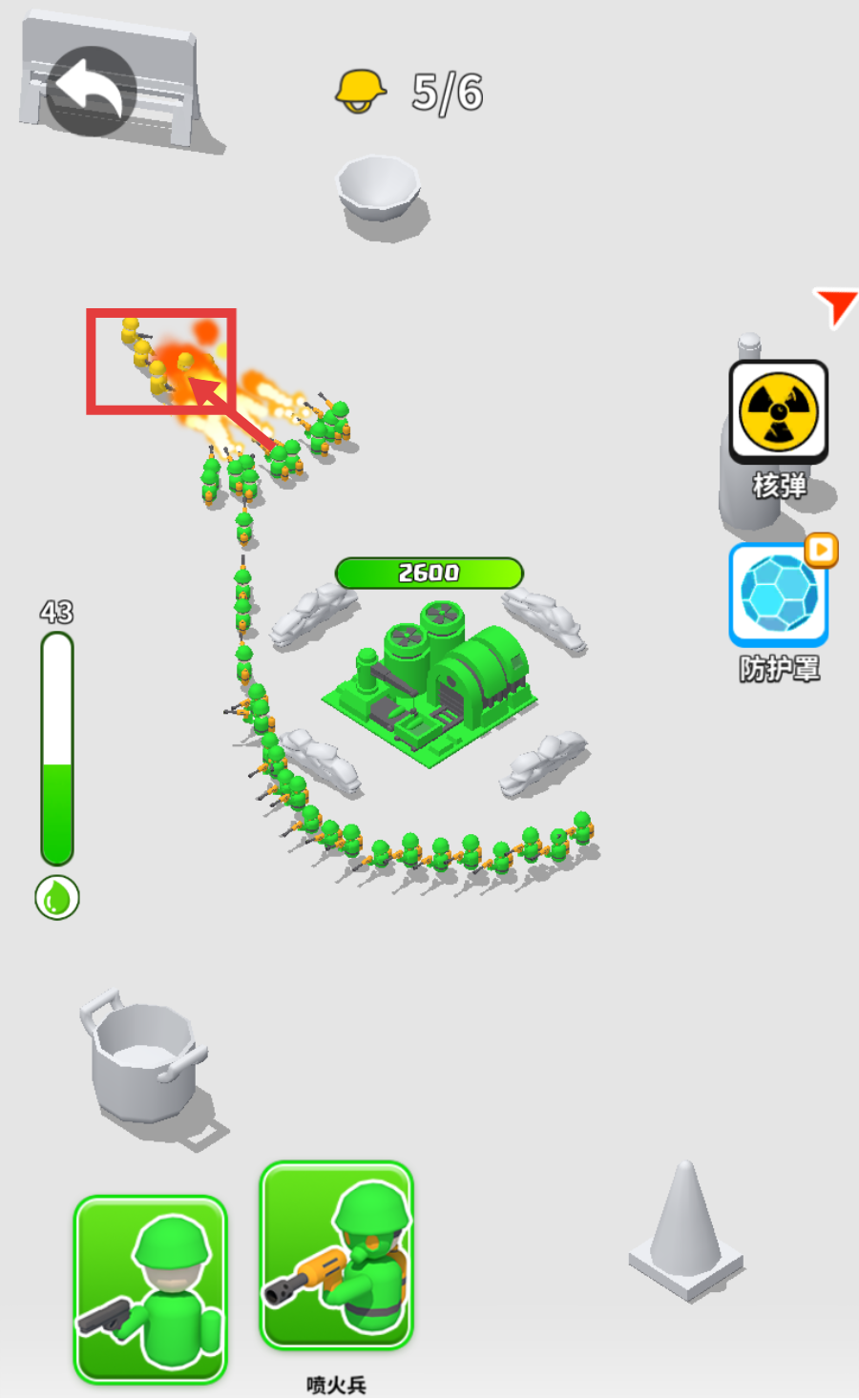 3、利用【喷火兵】的火焰攻击敌人,快速清理敌方单位,减少自身损耗,稳步推进战场局势。