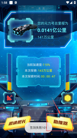 4、如何使用助推器:在飞船信息界面,点击“助推器”按钮,使用助推器增加飞船速度。