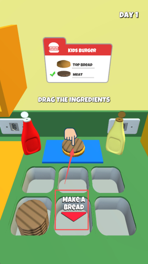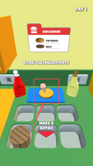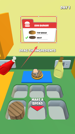 2、接着,根据订单要求,拖动相应的食材到工作台上。