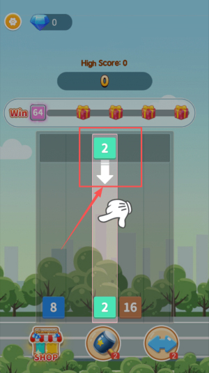 2、精准控制合并:滑动屏幕让相同数字的方块碰撞合并,利用颜色变化快速识别可合并方块,优先合并高阶数字,避免空间浪费。