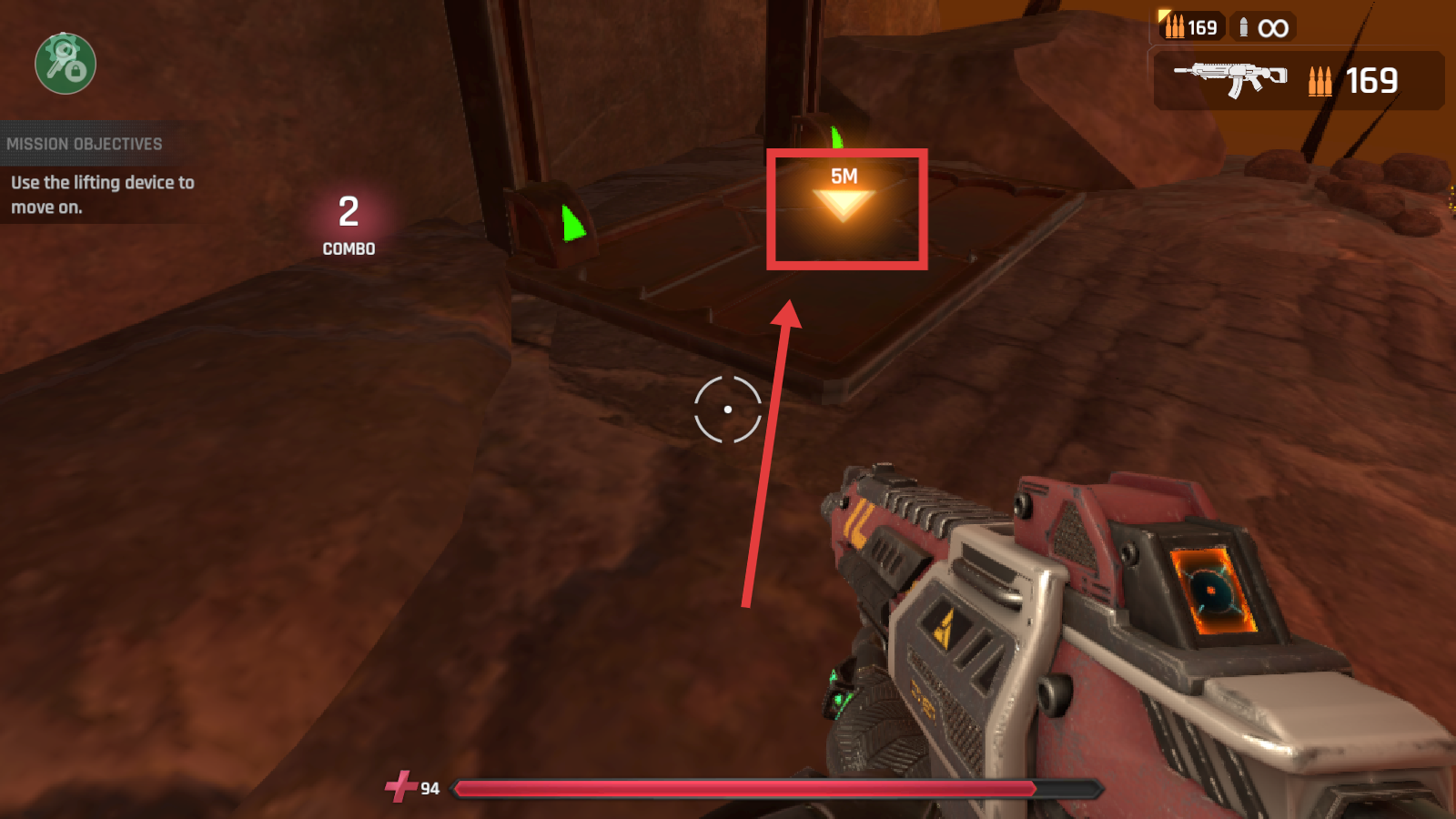 4、任务【使用升降装置前进】,跟随【5M】目标点,到达装置处继续推进。