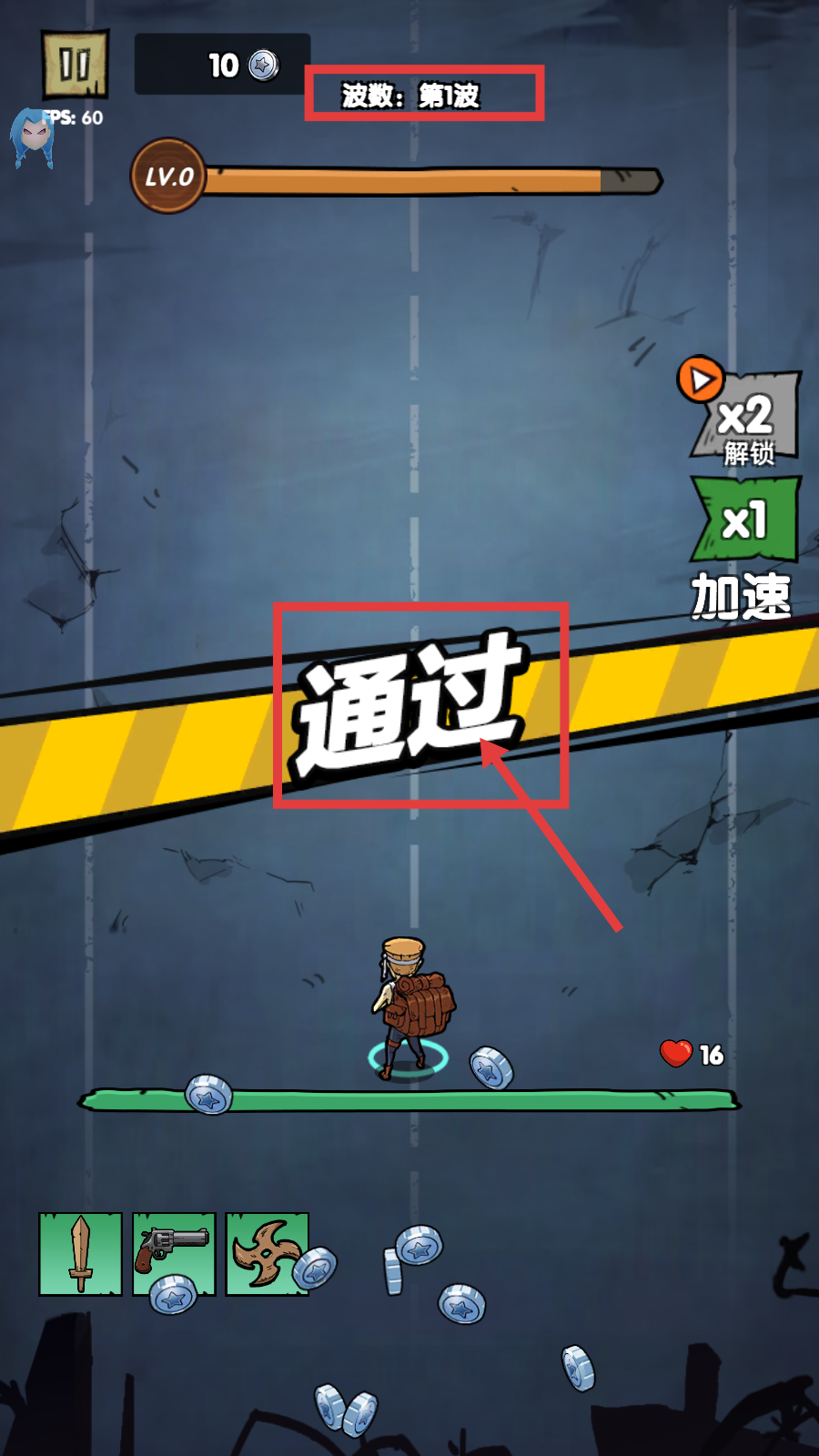 4、完成【波数-第1波】后显示【通过】,获得奖励,继续挑战后续波数提升实力。